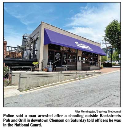 police said he fired gunshots out of his vehicle outside a bar in downtown Clemson.