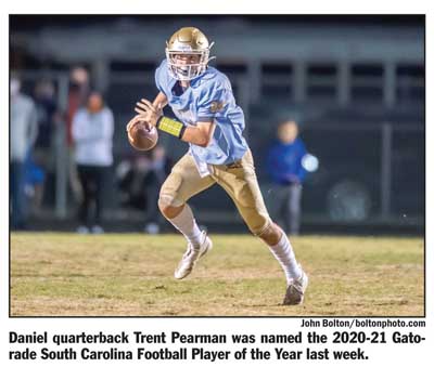 CENTRAL — More than five months after helping lead the Daniel High School football team to its first state title in 22 years, the honors are still rolling in for Trent Pearman.