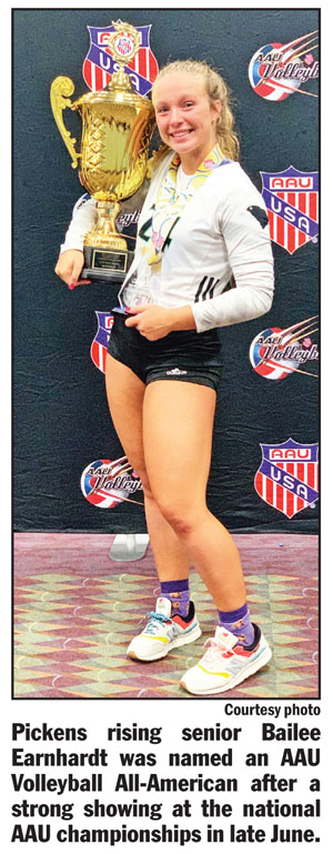 ORLANDO, Fla. — Pickens High School’s Bailee Earnhardt has been named to the AAU Volleyball All-American team.