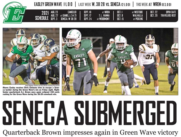 EASLEY — The Easley Green Wave were hoping an emotional loss in week one to Daniel wouldn’t cost them again Friday night at home against unbeaten Seneca.