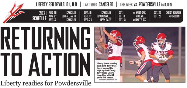 LIBERTY — After suspending play over the last two weeks due to COVID-19, the Liberty Red Devils are finally set to return to action this Friday against the Powdersville Patriots.