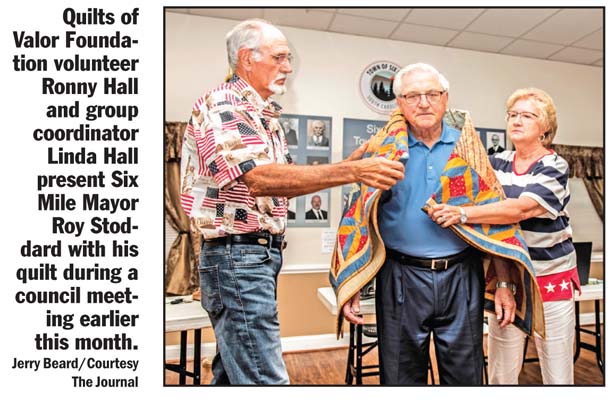 SIX MILE — Six Mile Mayor Roy Stoddard was presented with a Quilt of Valor for his service to the United States at the town’s council meeting earlier this month.