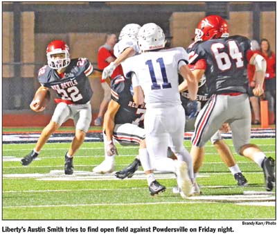 LIBERTY — Following a two-week hiatus due to COVID-19, a shorthanded Liberty Red Devils team fell to the Powdersville Patriots 40-0 in out-of-conference action on Friday night.