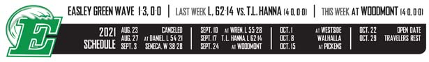 EASLEY — Playing and beating fourth-ranked Class 5A power T.L. Hanna Friday night was going to take an almost perfect game from the Easley Green Wave.
