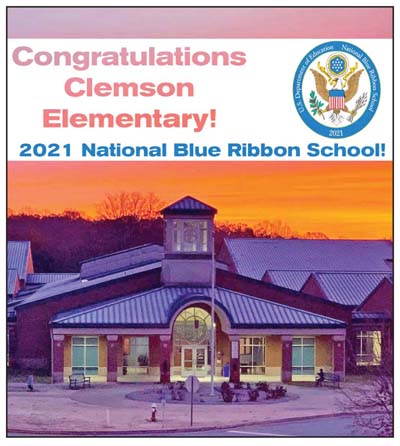 CLEMSON — Clemson Elementary School is one of five South Carolina schools to receive the 2021 National Blue Ribbon distinction.