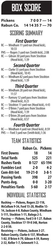 CLAYTON, Ga. — On the surface, the Pickens Blue Flame’s 70-14 road loss to the Rabun County (Ga.) Wildcats on Friday night looked like a lopsided beatdown of an overmatched team.