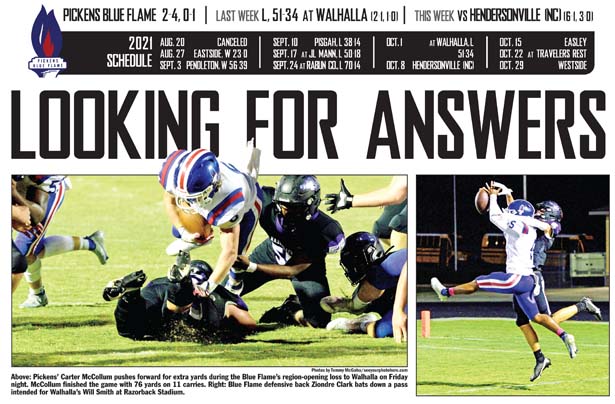 WALHALLA — The Pickens Blue Flame hit the road again last Friday night, looking for their first region win of the 2021 season, but the