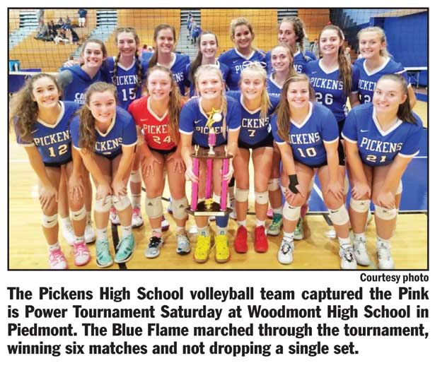 PICKENS — The Pickens High School Lady Blue Flame volleyball team continued its winning ways last week, winning the Pink is Power Tournament on Saturday at Woodmont High School in Piedmont and defeating cross-county rival and region foe Easley High.