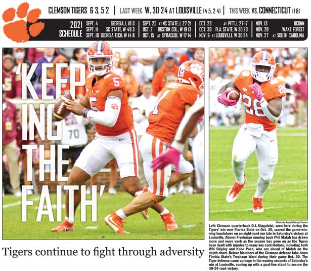 CLEMSON — If there’s been one constant for the Clemson football team this season, it’s been adversity, and that trend continued in Saturday’s narrow victory at Louisville.
