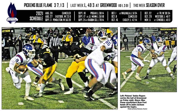 GREENWOOD — The Pickens Blue Flame’s season came to an abrupt end a long way from home as Chad Smith’s
