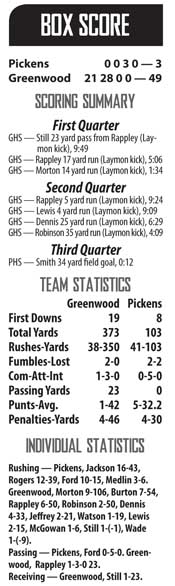 Pickens squad ran into a buzzsaw, falling 49-3 to the Greenwood Eagles in the first round of the