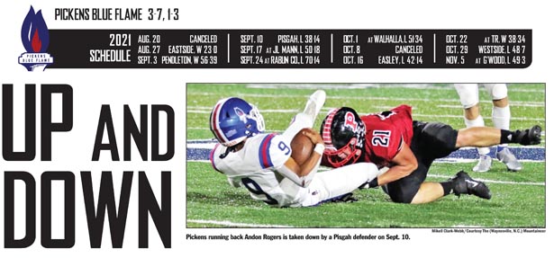 PICKENS — With their season coming to an end two weeks ago against Greenwood, the Pickens Blue Flame can only describe their season as up and down.