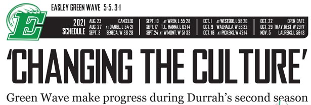 EASLEY — After a somber start, measurable progress was made in coach Jordan Durrah’s second season as football coach at Easley High School.
