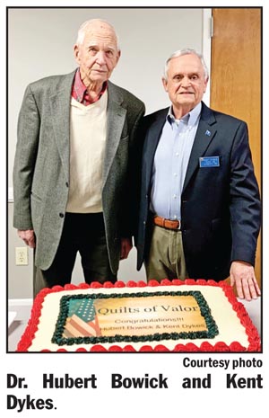 EASLEY — Veterans Dr. Hubert Bowick and Kent Dykes were awarded prestigious Quilts of Valor at the American Legion Post 52 meeting on Feb. 22.