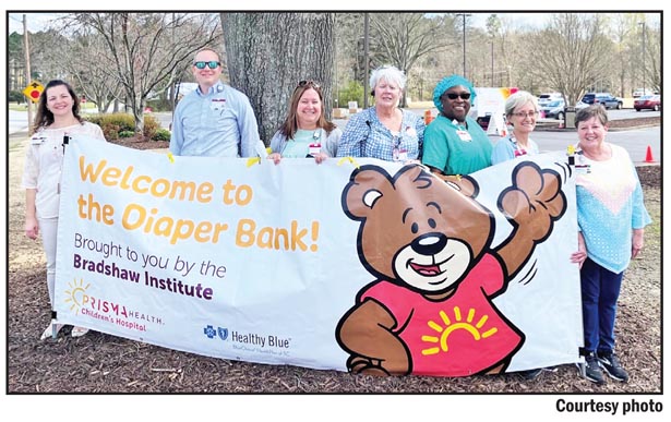 During a Prisma Health Children’s Hospital Diaper Bank distribution event in Easley on March 22, volunteers provided more than 16,500 diapers and pull-ups, totaling around 220 children served. Families also received giveaway bags from Healthy Blue South Carolina and Pampers, as well as information on where to get their car seat checked locally. Of those families, officials were also able to provide brand new car seats to two families who did not have children in car seats when they arrived. “We heard from the many families that we served how appreciative they were of our services,” said Candi Forester-Smith, manager of the Prisma Health Baptist Easley Foundation. Pictured, from left, are Prisma Health employees who volunteered their time to participate in last week’s diaper bank event at Baptist Easley — Forester-Smith, Lloyd Sarbacker, Dana Rutland, Mary Fields, Renee Hunter, Nancy Kendall and Andrea Stegall.