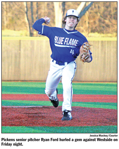 PICKENS — A dominant day on the mound gave the Pickens Blue Flame their first region series win on the season on Friday as they took down Westside, 5-0.