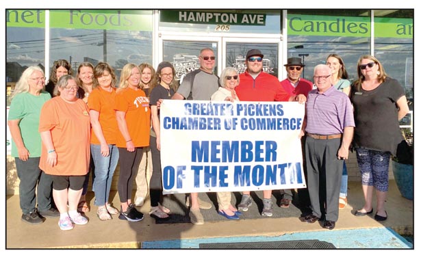 Bee Well Honey Natural Market Bagels and Coffee, located at 205 Hampton Ave. in Pickens, has been chosen as the Greater Pickens Chamber of Comerce April Member of the Month Pictured at center are owners Donna, Kerry and Stetson Owen, along with their staff, Lisa Thomas, Donna Leamey, Rebeka Holt, Adrian Looper, Pam Smith, Angie Bowen, Tanna Stewart, Kimberlee Turnbough, Pickens Mayor Fletcher Perry and members of the chamber board of directors, Bryan Owens, Anna Chastain and Debbie Gravely. Bee Well is open Monday-Friday 7 a.m.-6 p.m. and Saturdays 9 a.m.-5 p.m.