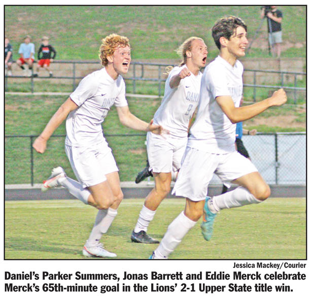 POWDERSVILLE — Playing in what head coach Phillip Boyer described as the most intense game of his career, the Daniel High School boys’ soccer team clawed its way out to a 2-0 lead against Powdersville on Monday night before a last-minute goal by the Patriots cut the lead to one.
