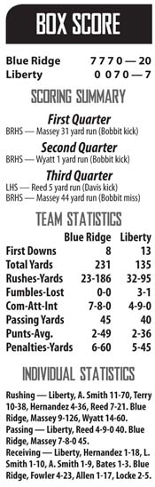 LIBERTY — Coming off of a win at Carolina to open the season, the Liberty Red Devils failed to keep the momentum as they dropped their first home game of the year in a 20-7 loss to Blue Ridge on Friday night.
