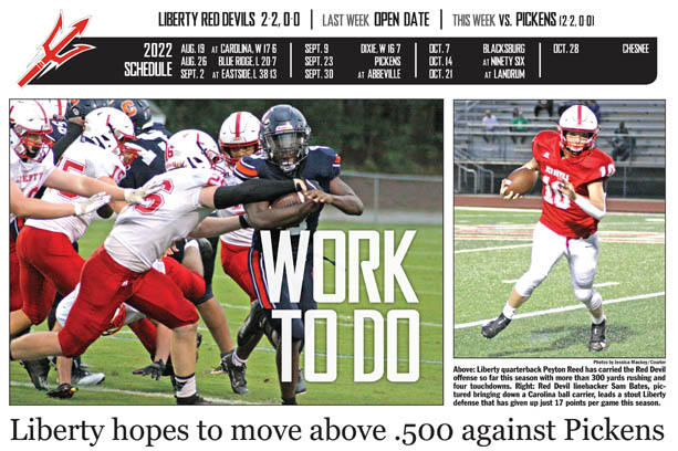 LIBERTY — After winning just two games over the last two years combined, the Liberty Red Devils have already matched that win total this season, sitting at 2-2 with six games left in the season, including a county clash with Pickens this week.