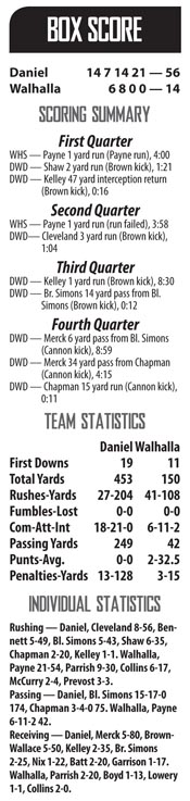 ranked team in Class 3A and might have even been tied if not for a pick-six from Daniel’s Misun “Tink” Kelley off a tipped pass in between two perfectly executed drives.