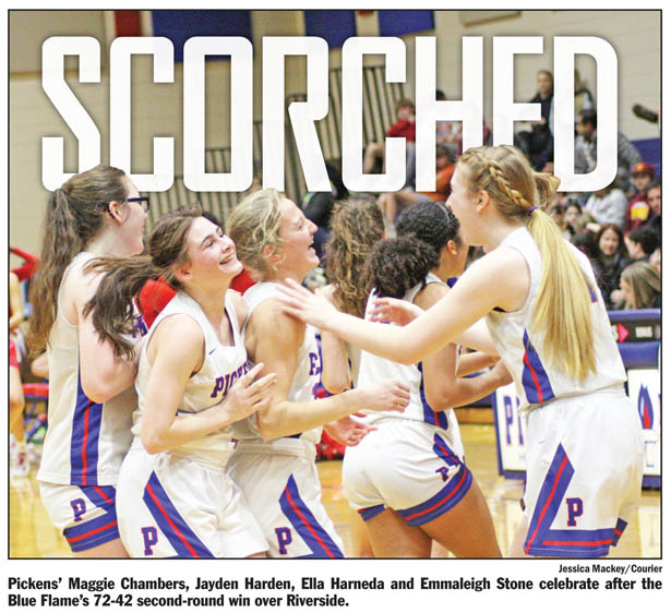 PICKENS — After cruising to victory in the first round over South Aiken, the sixth-ranked Pickens Blue Flame girls’ basketball team expected a greater challenge on Saturday night against the 10th-ranked Riverside Warriors.