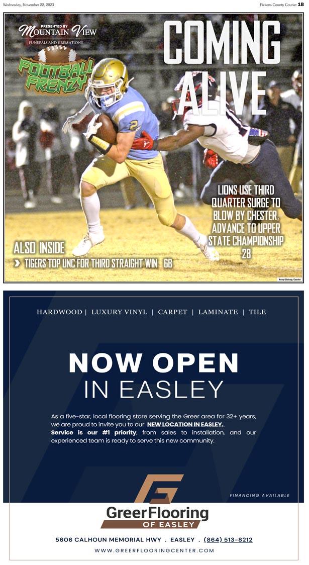 You can also subscribe and have our print edition mailed to your home each week. If you want to read Football Frenzy presented by Mountain View Funerals and Cremations right on your phone, just visit our website www.yourpickenscounty.com and subscribe for instant access.