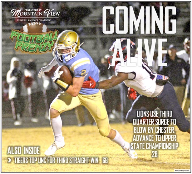 Lions use third quarter surge to blow by Chester, advance to upper state championship and Tigers top UNC for third straight win.