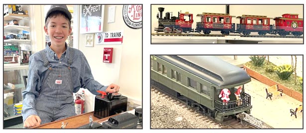“Home for the Holidays by Train” will be on the main HO exhibit/layout. Various buildings on the layout will have Christmas decorations, and there will be a special steam Santa excursion train running through it. “The Toy Train under the Christmas Tree” has a special Lionel O scale “Polar Express” exhibit in the museum’s central area. A special “Holiday Garden Scale Toy Train” will also be running on the overhead G scale layout.