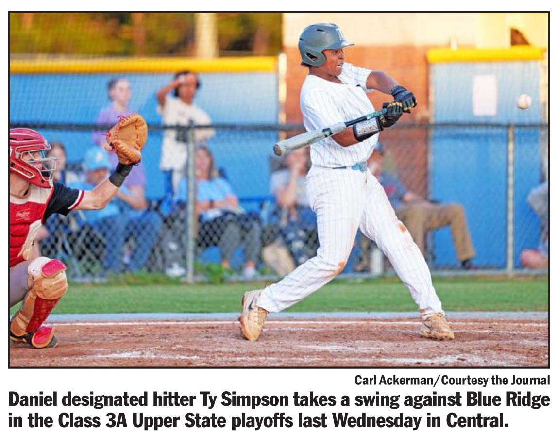 CENTRAL — In a tight, low-scoring affair on Wednesday evening in Central, the Daniel High School baseball team couldn’t get anything going as it saw its season come to an end with a 2-1 loss to Blue Ridge in the teams’ elimination game in the Class 3A Upper State playoffs.