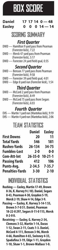 Third-ranked Daniel answered that question with a vehement no Friday night, beating the Green Wave, 48-14.