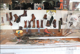 The owner had pulled into a parking space by the courthouse on Court Street. He got out to speak with the painters and did not pull the shifter all the way up into park. When he got out, the truck slowly backed out and crossed all four lanes of Main Street without striking anything and curved in between two parking spaces. It then hopped the curb and ran into the store front of Brock’s.