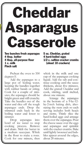 There are many different ways to prepare it, but the most important thing to remember in cooking asparagus is not to overcook it. You want it tender enough to chew, but not limp and soggy.