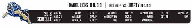CENTRAL — The Daniel Lions had one of their worst seasons in recent memory in 2017. Coming off an above-average season in coach Jeff Fruster’s first year at the helm, the Lions had no idea of the adversity they would face last season, as they finished just 2-9.