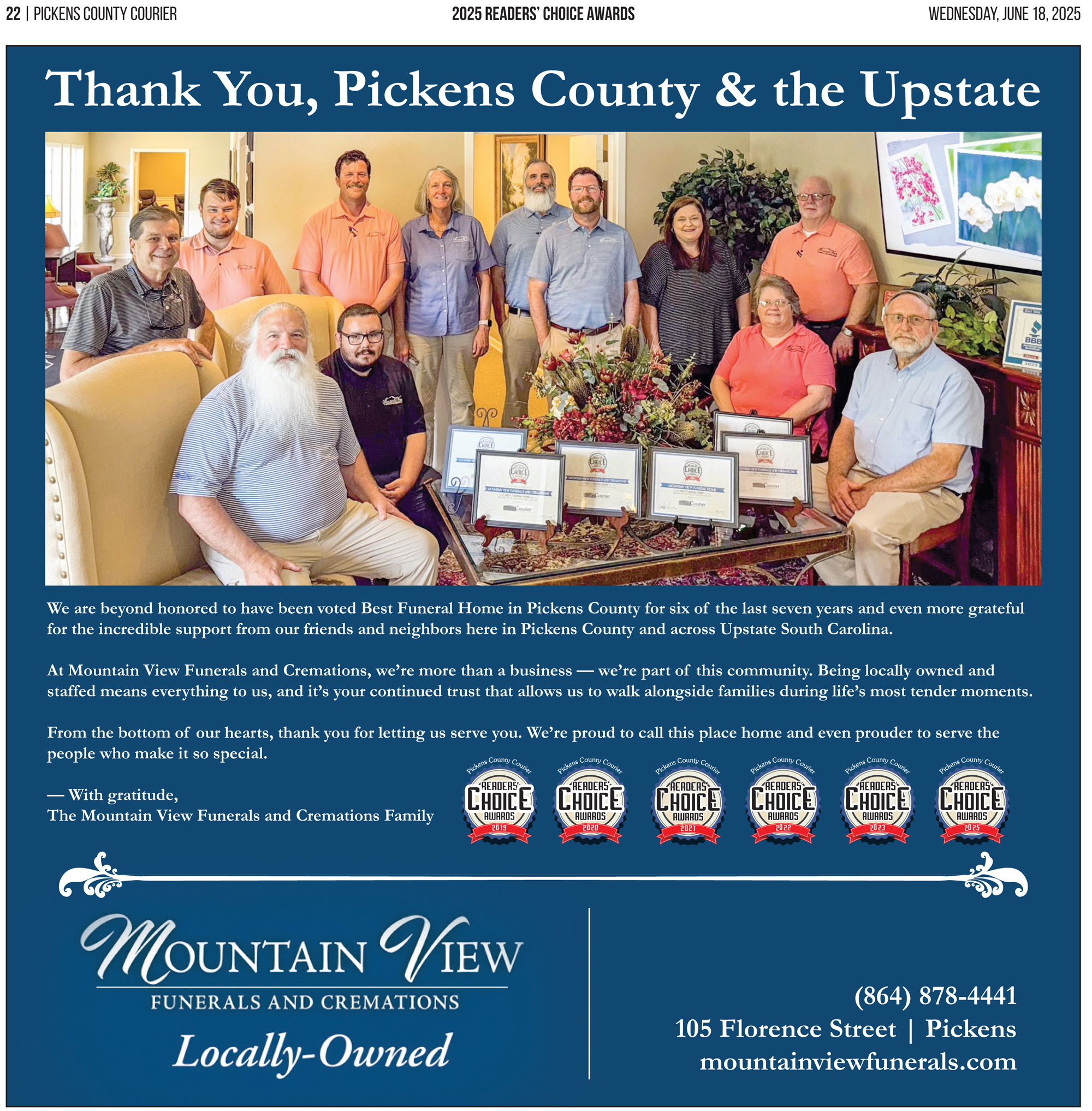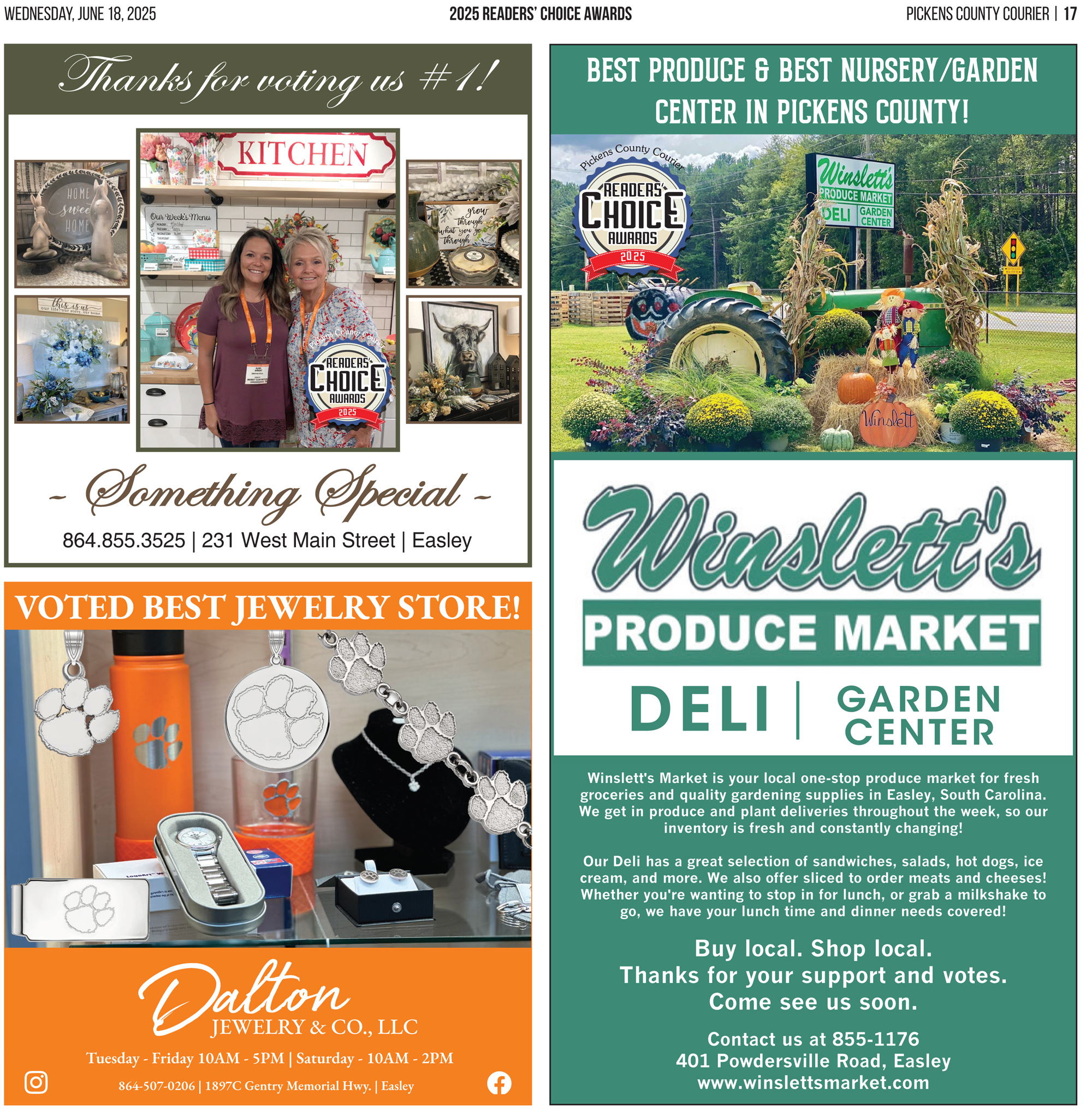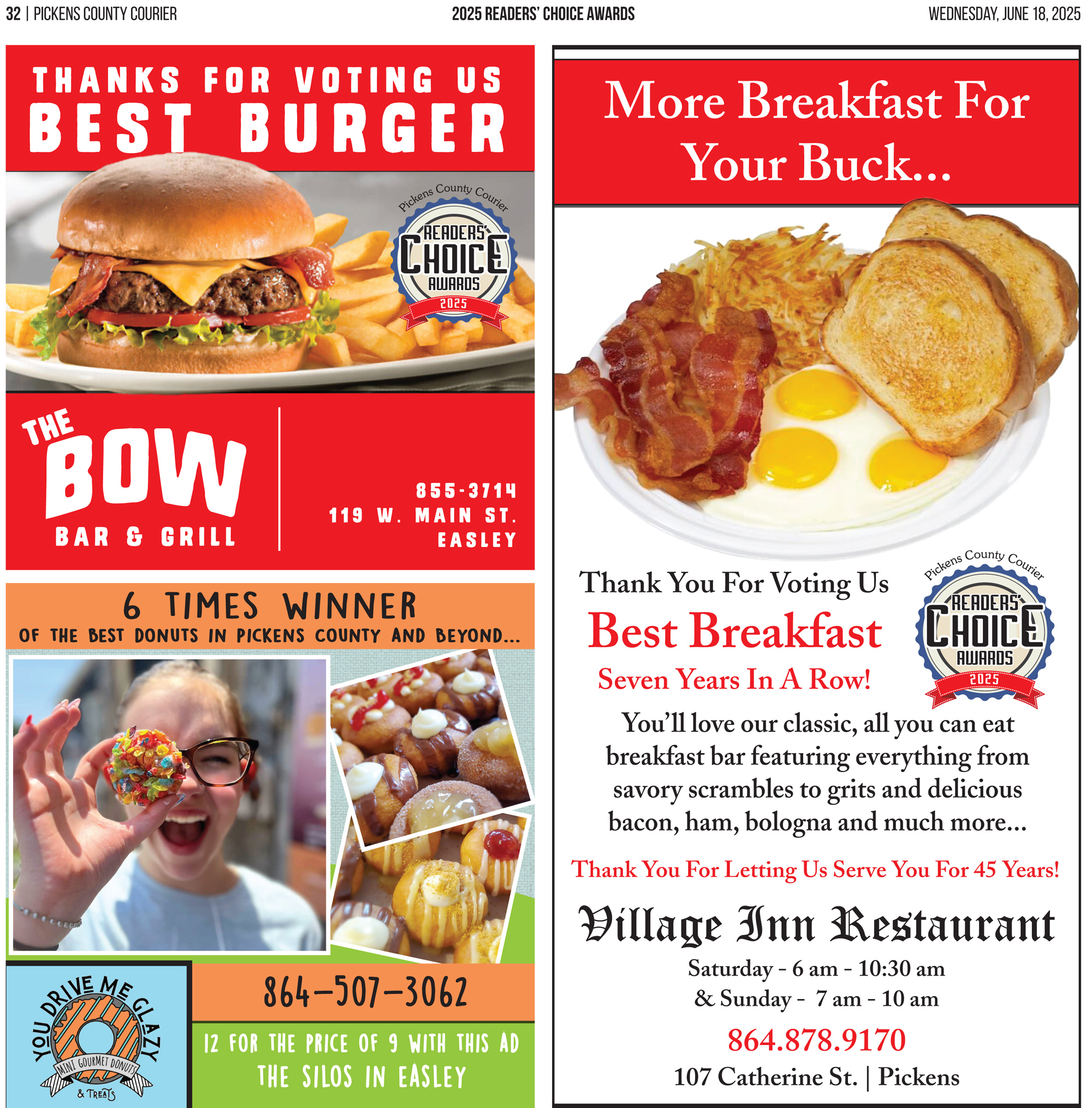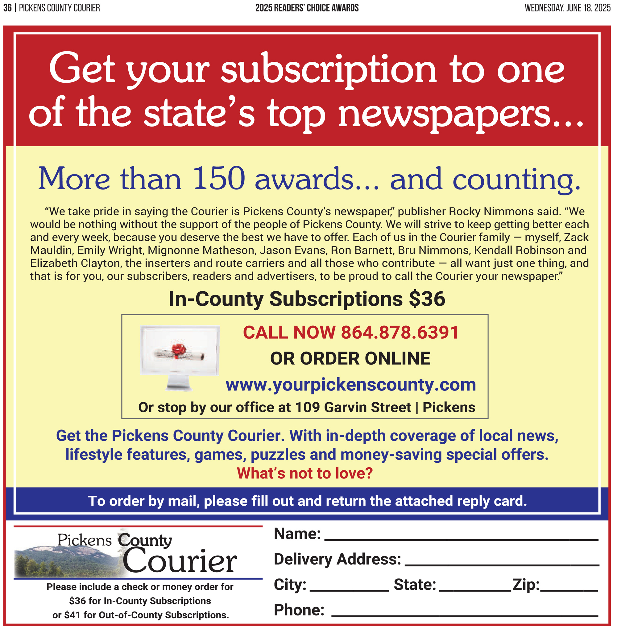 Pickens County Courier readers cast more than 5,000 ballots for their favorite businesses from across the county, and the time has finally come to officially unveil the winners of the seventh-annual Readers’ Choice Awards. Check inside today’s issue for a special keepsake section listing the winners and honorable mentions across more than 100 categories.