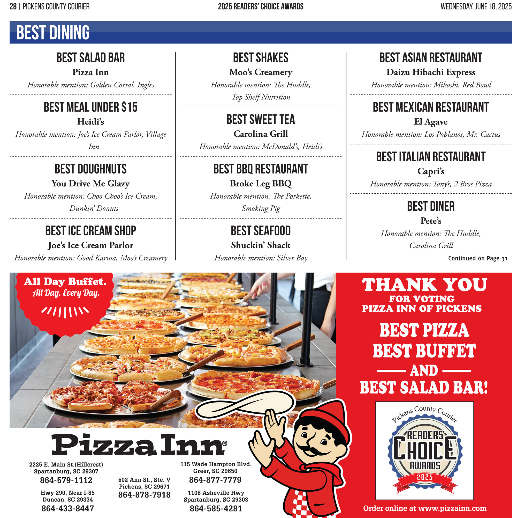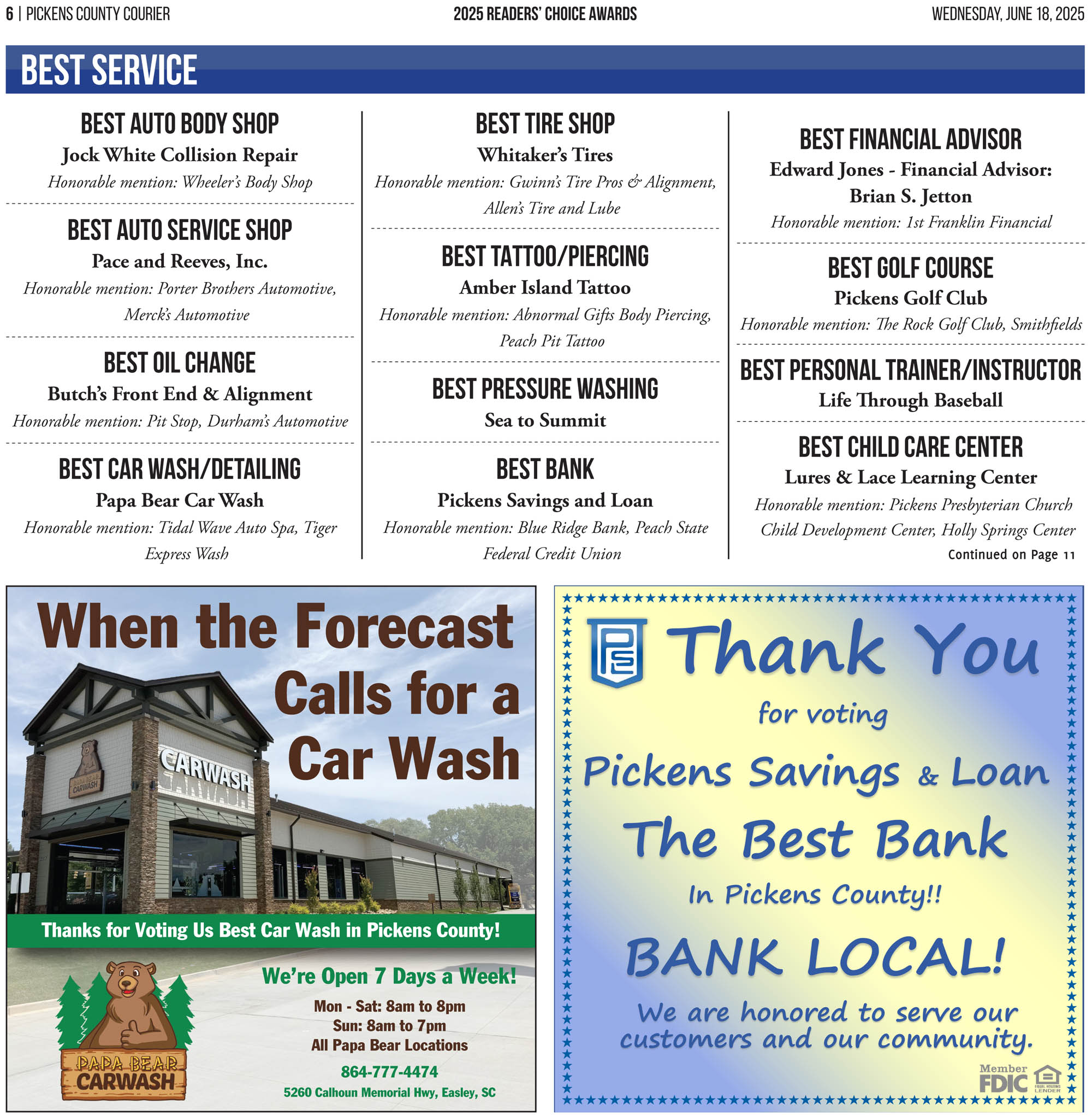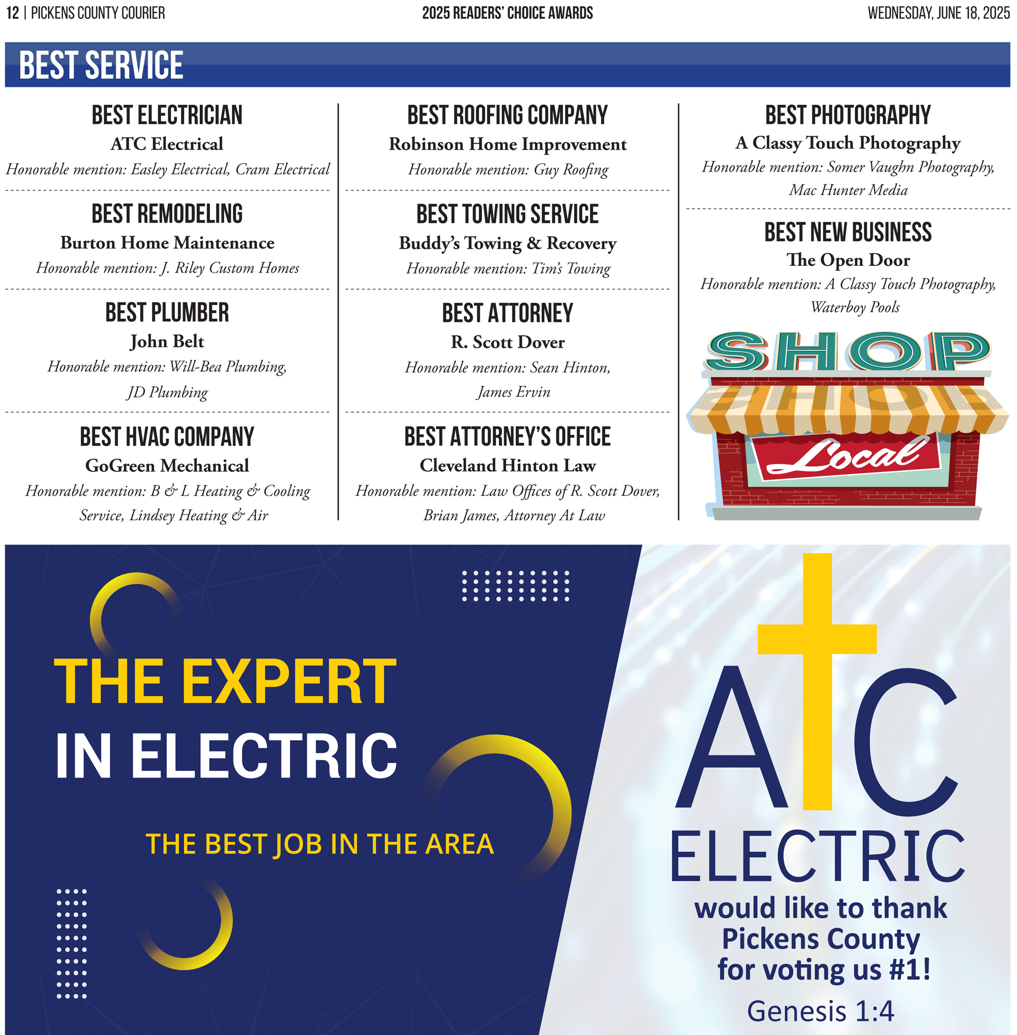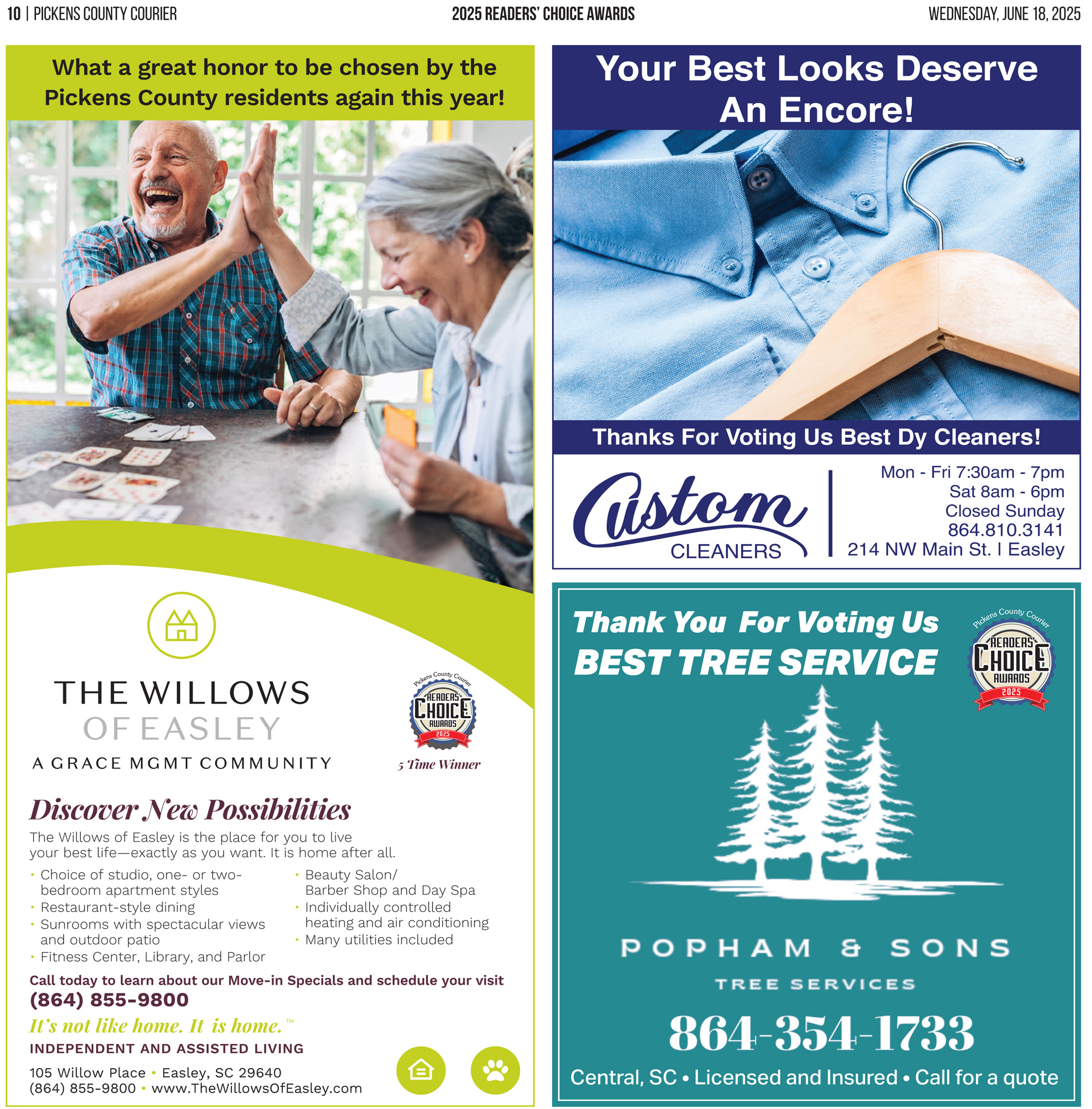Pickens County Courier readers cast more than 5,000 ballots for their favorite businesses from across the county, and the time has finally come to officially unveil the winners of the seventh-annual Readers’ Choice Awards. Check inside today’s issue for a special keepsake section listing the winners and honorable mentions across more than 100 categories.
