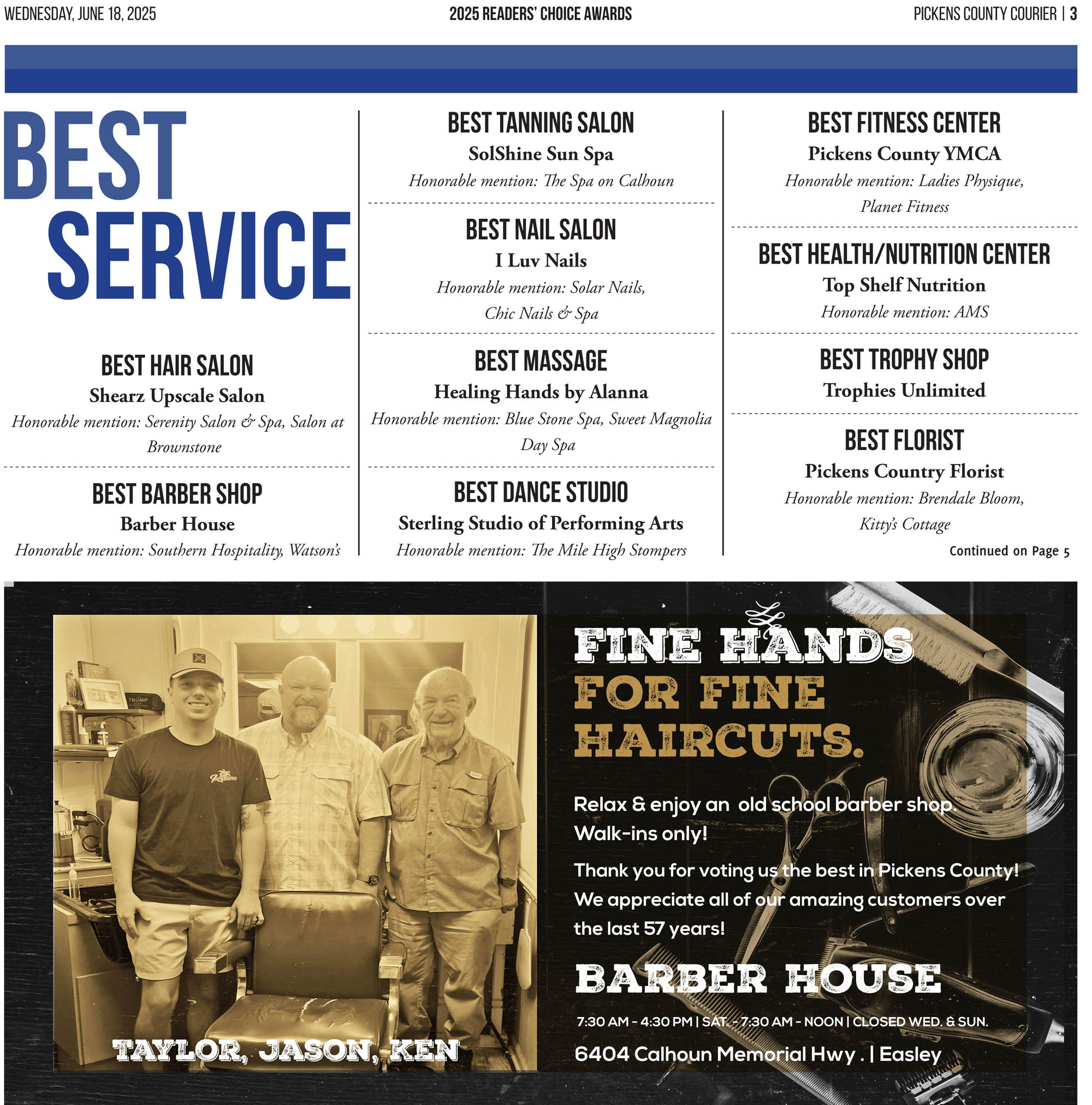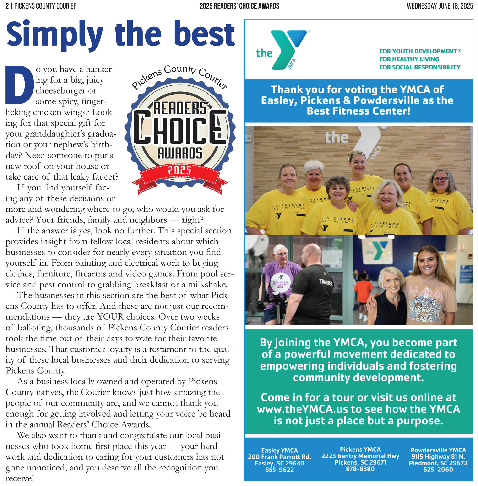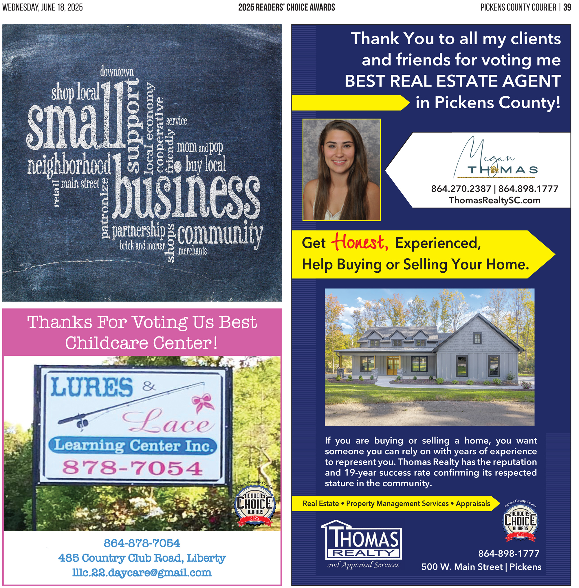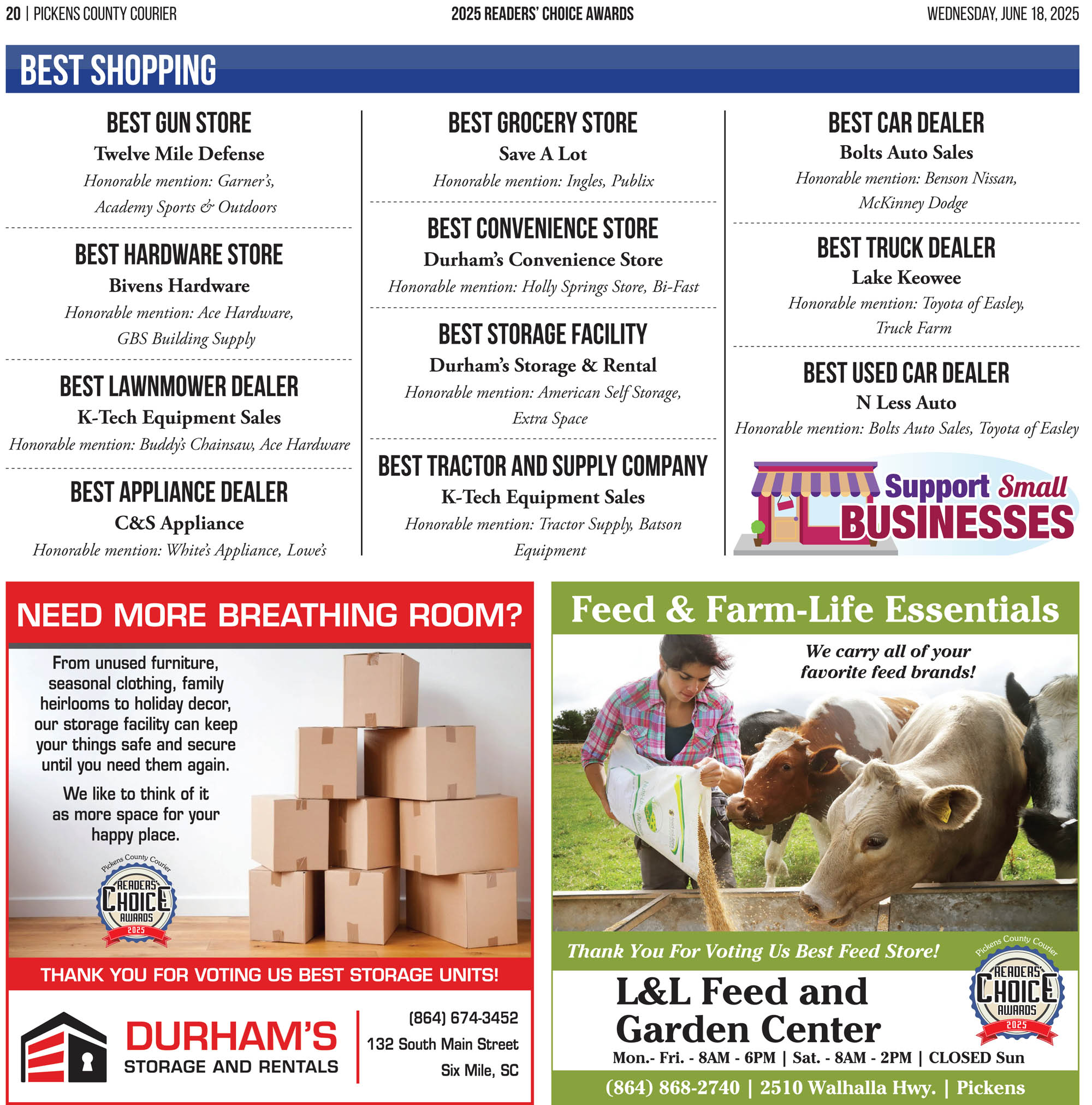Pickens County Courier readers cast more than 5,000 ballots for their favorite businesses from across the county, and the time has finally come to officially unveil the winners of the seventh-annual Readers’ Choice Awards. Check inside today’s issue for a special keepsake section listing the winners and honorable mentions across more than 100 categories.