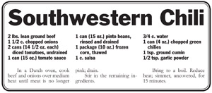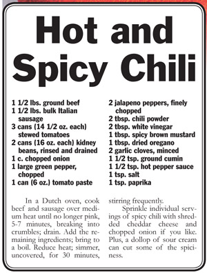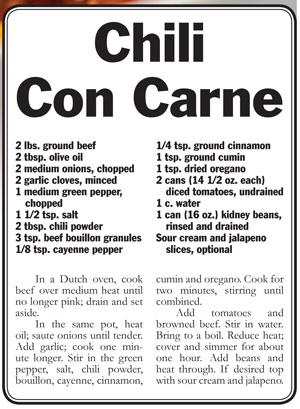 nothing does this better than chili. It’s filling, nutritious and is warm in temperature and seasonings.