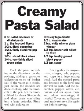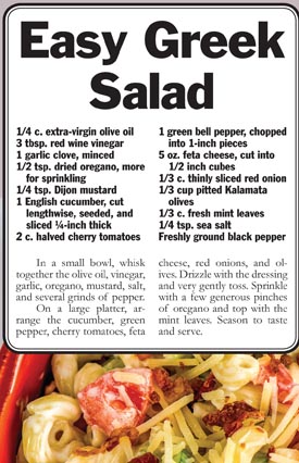 Feel free to add meat to the Greek and pasta salads. They’re good either way.