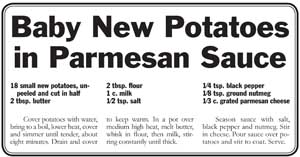 access to new potatoes. These are potatoes just rolled from the dirt with skins so thin they easily wash away