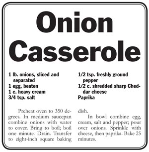 These recipes all feature onions, plentiful this time of year, and