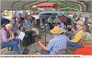 Old-time pickers happen to be one of my great interests in life — partly because I’ve become one of them myself. And the group that gathers every Wednesday morning to entertain bargain hunters at the Pickens Flea Market has become, like the Rolling Stones, an institution.