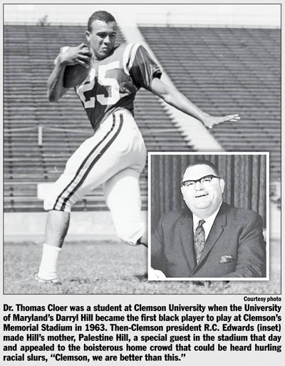 It was an ugly scene when the first African-American played in Clemson’s stadium. This was just before Clemson integrated its football team. Darryl Hill was the first black player to play in Clemson’s Memorial Stadium. Can you imagine the atmosphere when every school in every southern conference was segregated? Hill was an unbelievable pass receiver for the University of Maryland. His mother, Palestine Hill, was his greatest fan. When she arrived at Clemson’s football stadium, she was denied admission. The progressive Dr. R.C. Edwards was the president of Clemson when I was enrolled and was president when Palestine was denied admission. He was at the game and immediately made it very clear that Palestine was to be his most special guest to sit with him and his family in the president’s box.