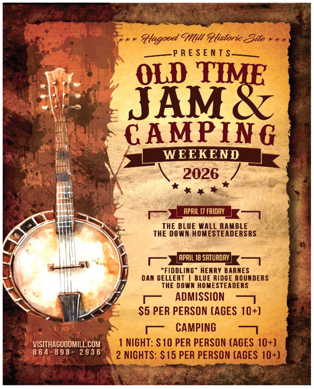 Pickens — Get ready for a toe-tapping, foot-stomping celebration of traditional Appalachian music and culture as the Old Time Weekend Jam returns to Hagood Mill Historic Site on April 17–18, 2026.