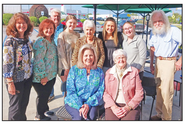 Mary Anne Bunton, chair of the Anderson University Board of Trust, and her husband, Ray Bunton, were the guests of the Liberty Community Scholarship Board at a recent morning coffee meeting with former Liberty Community Scholarship recipients Jaida Smith (2020), Lexy Whitaker (2022) and Millie Bigbee (2023), all accomplished young women who are currently pursuing degrees at Anderson University. Bunton is in the center, standing with Smith on the left, Whitaker on the right and Bigbee second from right. Bunton’s service is in evidence in small and large ways across Upstate communities, as she has been a member of the Anderson University Board of Trust for more than three decades. Not pictured are scholarship winner Gabriela Juan (2022) and Carla Stone, First Citizens Bank vice president and honorary board member.