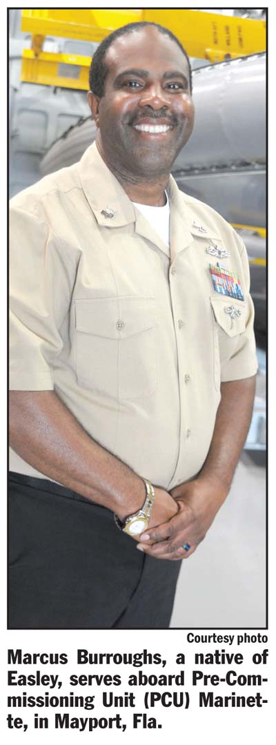 MAYPORT, Fla. – Petty Officer 1st Class Marcus Burroughs, a native of Easley, South Carolina, serves aboard Pre-Commissioning Unit (PCU) Marinette, in Mayport, Florida.