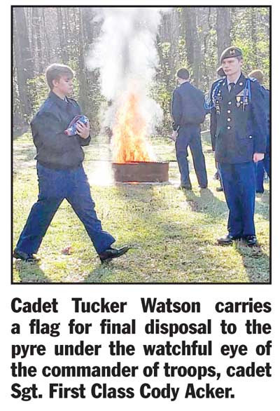 PICKENS — On the morning of March 15, cadets from the Pickens High School Blue Flame Battalion conducted a flag retirement ceremony at American Legion Post 11.