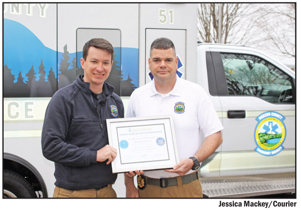Pickens County EMS training officer Dietrich Easter and director Michael Dunaway hold the county’s SAFE (Sexual Assault Forensic Excellence) designation certification. Pickens County recently became the second agency in South Carolina to receive specialized training to provide care to victims in the county. SAFE is created in partnership with South Carolina Victim Assistance Network, the S.C. Attorney General’s Office, South Carolina Law Enforcement Division and South Carolina Hospital Association. “This is a victim’s worst day of their life, and to ensure an easy transition, we educated ourselves on how to talk with the victim, pursue evidence and to walk them through the process,” Easter said. Jessica Mackey/Courier