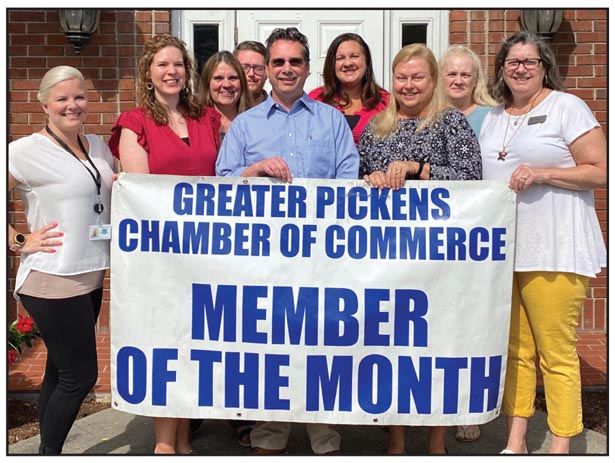 The Greater Pickens Chamber of Commerce has chosen Cassell and Hendricks, CPA, PA, located at 269 Ann St. in Pickens, as the July Member of the Month. Cassell and Hendricks offers tax planning and preparation, planning and strategic services, accounting and financial reporting, along with payroll using Quickbooks. You can contact them by visiting chcpa.net or by phone at (864) 878-7735. Pictured are Brittany Chapman of Alliance Pickens, Jennifer Dunigan, Jodi Brewer, Jonathan Kemp, Branden Daniels, Amy Avant, Donna Hendricks, Karon Hickey, all of Cassell and Hendricks, and chamber membership director Lisa Turnick. Not pictured were Dia Brown, Kendra Davis and Jan Lawrimore.