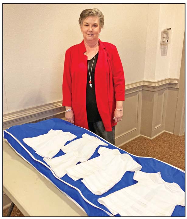 Stephanie Gillespie made Angel Gowns for infants who passed as part of a way to pay it forward. She is a member of the South Carolina Daughters of the American Revolution (SCDAR) Fort Prince George Chapter of Easley. At her first chapter meeting, she heard the chapter regent talk about a project that was close to her heart and say she would like someone in the chapter to do this wonderful project. Angel Gowns are usually made from wedding dresses, but the ones pictured are made from donated DAR Page dresses. She made five gowns ranging in size from mini preemie to newborn. They were donated to a local hospital to have on hand for families who lose an infant for last pictures and burial. She now has a wedding gown, and the next ones will be made from it. “Losing a child is one of my worst fears. I feel very humbled to be able to provide this small comfort during such a terrible time,” Gillespie said.